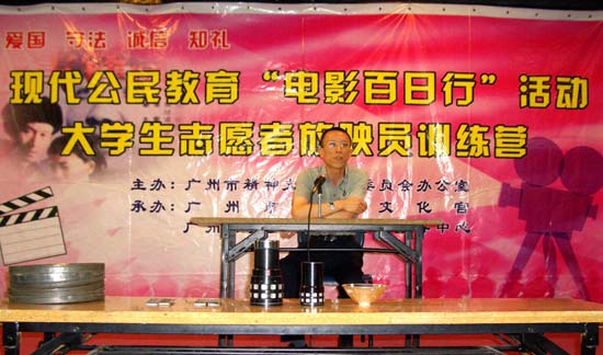 在此次第三期培训班的开班仪式上,培训班的学员不仅初步熟悉了基本的放映程序及技巧,还聆听了首期培训班学员的肺腑之言。作为大学生志愿者放映队中的“大师兄”,赖玉庭同学以自己一年多来在志愿者放映队中的亲身经历与师弟师妹共勉。“在成为放映志愿者的日子里,我随队到过许许多多地方,直接而真实地体验了生活,在增长见识的同时,还学到了很多书本上学不到的生活感悟。我真切体验到团队精神的内涵,感受到真正的快乐来源于付出而非给予,更真实领悟到平凡为何能成就不平凡。”当听到部分山区里的孩子二十多年没看过电影,听到放映队在放映过程中一个个感人的故事时,不少学员的眼里闪烁着泪光。