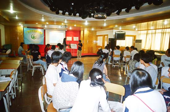 活动开始,“青春健康快车”讲师团的郭文欢老师把学员分成5个大组,要求每个小组就“当你听到艾滋病时,你会想到什么?”展开讨论,学员们畅所欲言,说出了“可怕、惨了、不知所措、无药可救”等字眼。郭老师借此介绍艾滋病的现状—— 2005年中国有65万艾滋病感染者,广东省发病率居全国第五位……一串串瞩目惊心的数字,激起了学员们对艾滋病知识的求知欲。随后郭老师组织大家进行第二个小活动——猜猜谁是HIV感染者。大屏幕上不断切换弹奏的恩爱情侣、公园健身的小伙子、享受天伦之乐的老人等等的照片,现场气氛一下子活跃起来,大家七嘴八舌地猜测,最后公布的答案令人惊讶,竟然照片中人全是艾滋病感染者!没有一个小组答对。郭老师告诉我们,仅从人的外貌是难以辨别谁是AIDS感染者的,只有到医院做HIV血液检测才能测出是否感染。艾滋病感染者可以像正常人一样学习、工作和生活,艾滋病人也不是直接死于艾滋病,而是死于因免疫力缺失的各种并发症。由此学员们了解到艾滋病的病状、艾滋病发展的3个时期、感染HIV的3个主要途径(血液传播、性传播、母婴传播)等知识。