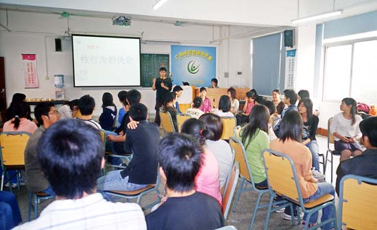 当天下午3时前,学院心理辅导站的老师早早就在教室等候“快车”的到来,他们还按课程的要求挂好宣传标语、横幅,摆放好桌椅,准备好多媒体。下午3时正,课程正式开始。在这次课程中,同学们对本来难于启齿的“性”话题不再忌讳,人人敞开心扉,畅所欲言,气氛异常活跃,课后同学们都表示对“性”有了新的认识。