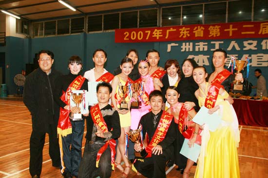 青宫代表队的选手继今年1月13日在“2006广州市体育舞蹈锦标赛”上称霸广州市体育舞蹈舞林后,相隔两个月后的今天,又在“2007广东省第十二届国标舞大赛”上囊括了13个冠军、7个亚军、1个季军、1个第4名、1个第5名。领奖席上,各赛组的选手们身挂印有“广州市青年文化宫”字样的授带,鱼贯而上,出尽了风头。