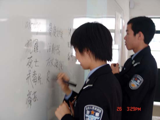 在讲座上,无论是张老师还是听课的学生都全情投入,掀起了一个又一个高潮。讲座由刺激好玩的“捉毒虫”互动游戏开始,把学员带入到讲座中去,中间穿插了小组讨论等环节。各小组的讨论都很热烈,最后还作了总结报告。最精彩的可算是情景小品,简单的角色扮演令同学们更加明白如何对“毒品”SAY NO,正如他们说的:“原来SAY NO不但可以用语言去表达,还可以用表情和动作去完成!”同学们都表示,轻松搞笑的小品既能自娱自乐,从中更是受益非匪。