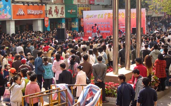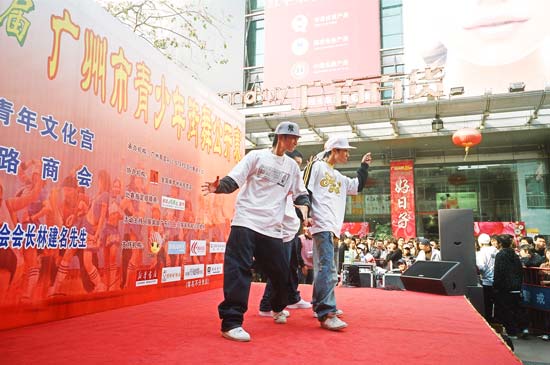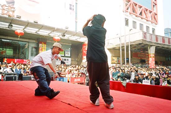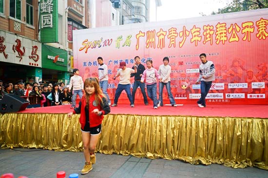 由Hip-Hop音乐与舞步点燃的热情在街头被加倍放大。潇洒的舞步、激昂的音乐之间的完美融合所带来的时尚视听盛宴,吸引了大批市民驻足观看,不仅舞台周围里三层外三层,甚至颇远处广百百货的广场、门口楼道上都站满了观看比赛的市民。在自由无拘、激情飞扬的Hip-Hop浪潮中,几乎没有人能够保持“正襟危立”,人群也和着音乐不由自主地摇摆,欢呼声一浪高过一浪。