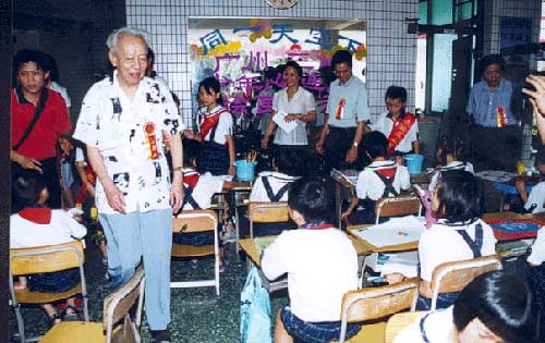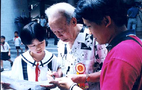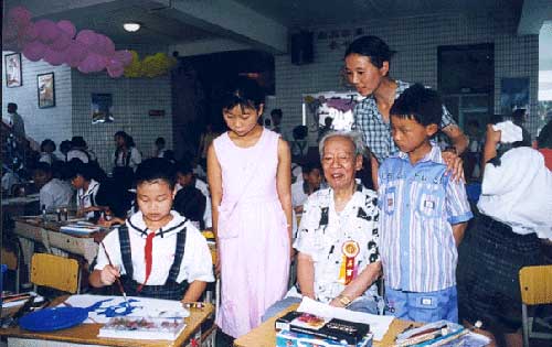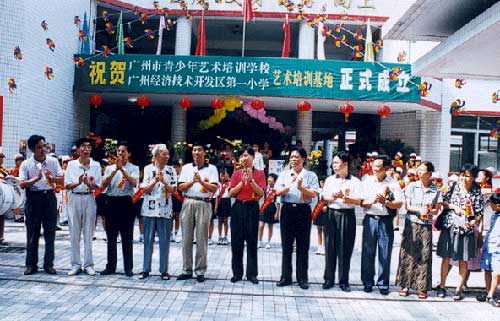 在“扶孤助学,奉献爱心”活动中,年过85的著名漫画家廖冰兄老人也来到活动现场,他高兴地看了孩子们的绘画,欣然接受了青年文化宫颁发的聘任廖冰兄老先生为广州市青少年艺术培训学校名誉校长的聘书。并为青宫与开发区小学共建的“艺术培训基地”揭幕。