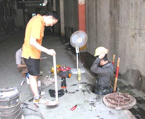 前年,工程部自行对排污管道和泵房进行改造安装,虽然设计超出常规并受到很多专家的非议,但是主任室的立场坚定,我们坚决贯彻,改造终于顺利完成。而且运行两年多来,从未出现过水淹现象。为了使改造更加完善,近来工程部进行了第二次改造。