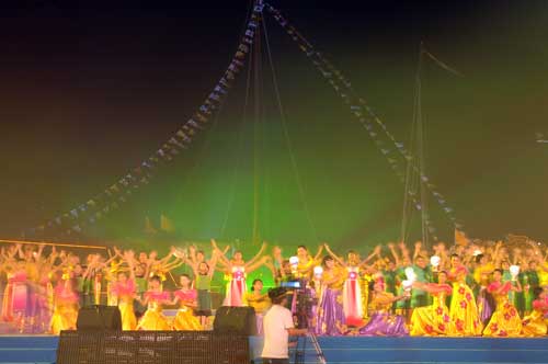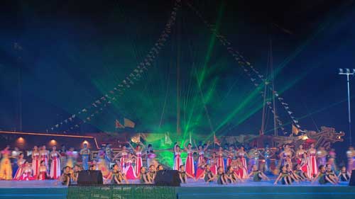 这是一台中国传统武术、粤剧、杂技、民族乐器演奏、现代歌舞与焰火融为一体又互相添彩的晚会。在欢庆的开场舞《相聚珠江》中,一群手持以广州古灯塔琶洲塔作设计蓝本,寓意友谊之光耀千年的“光耀千年”灯的舞者格外引人注目,因为歌德堡号正是在“光耀千年”灯塔的指引下驶入广州港的。而这群舞者,正是我宫青年舞蹈团的队员。问舞蹈团的小君手持“光耀千年”灯有何感想,她说:“这灯虽然造型简洁,却做含意深刻,有着照亮中瑞商贸文化友好往的经历,照亮中瑞友谊发展的美好前景的寓意。”小姑娘明显做足了功课,对舞蹈所表达的内涵理解得如此透彻,难怪她在起舞时激情洋溢。