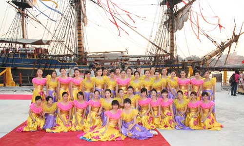 参加这次演出的40名爱跳舞的少女都分外兴奋,她们认为作为一个业余舞蹈爱好者、一个业余舞蹈团的成员有机会参与这台市政府组织的、万众瞩目的外事演出,是一种幸运,她们感谢青宫给了她们这样一个“262年仅一遇”的演出机会。曾是青宫舞蹈团成员、现是北京师范大学三年级学生殷樱同学说:“上星期劳老师打电话问我想不想参加这个演出,这么难得的演出简直求之不得,我一口就答应了。能见证这样一个特殊的历史事件,是令人兴奋的。”队员的兴奋在一到达演出地就表露无遗。她们先是以歌德堡号为背景,寻找最佳角度拍照留念,接着邀请一位气质儒雅的歌德堡号水手合影,这位UNCLE(叔叔)级的水手乐呵呵地一一满足了这群中国美少女的要求,临别时不停地说:“CHINESE GIRL,BEAUTIFUL!”(中国女孩,漂亮!)