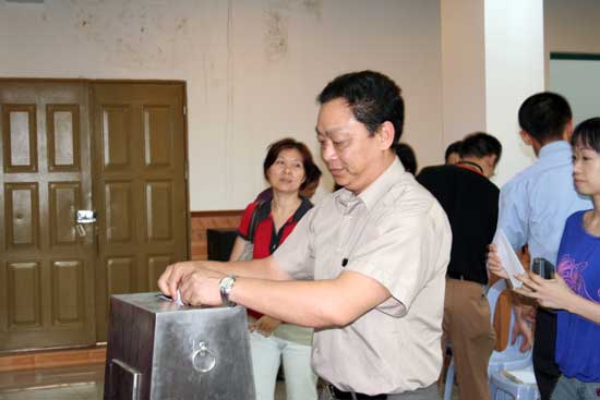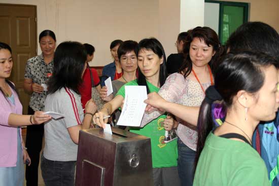 5月23日下午,青宫举行了第五届工会成员换届选举大会。大会在庄严的《国歌》声中拉开了帷幕,会议严谨有序地完成了第四届工会总结、第五届工会委员候选人名单公布、员工投票、现场点票等十一项议程。宫副主任、第四届工会主席屠宪治代表第四届工会向全体员工总结了第四届工会在过去六年的具体工作情况,第四届工会财务委员莫长娟就第四届工会的财务情况作了具体的汇报。经过全体员工一人一票的选举,产生了由屠宪治、何少丽、陈超然、陈惠娟、梅莉娜、黄志扬、吴海翔组成的青宫第五届工会。