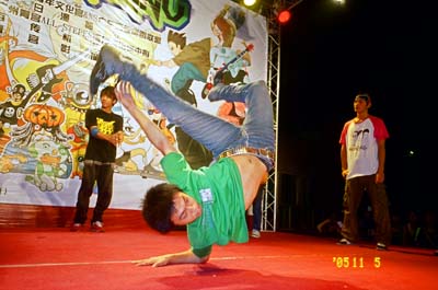 整个晚上精彩的表演不断涌现,同样精彩的还有游戏节目。每个游戏都与舞蹈有关,获胜的一方可以获得由青宫影城送出的电影票,不敌对手的一方也能获得精美的礼品,这自然招来了许多参赛者。其中最激的比拼要数Breaking大比拼。这个环节由现场的Breaking爱好者即席发挥,争夺神秘大奖。B-Boy们精彩地斗舞,“无限头转”、“空中托马斯”、“大风车”等高难度动作,不断点燃台下同学的激情。经过激烈的角逐,一位头裹蓝白色头巾,口说国语的B-Boy以其“空翻”力压群雄,获得了由冬日漫画社主笔黄国荣先生为他即席挥毫的一幅漫画画像。