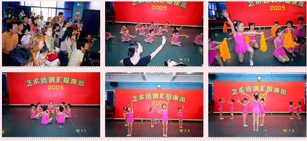 不讳言地说吧,这场汇报演出的内容并不抢眼,大致是舞蹈班各班别的学生平时的基本训练内容和数个组合舞蹈,以及语言班的几个小品表演,但家长们自始至终看得津津有味,相机、摄像机的镜头一直聚集自己的孩子。只听见一位母亲对身旁的丈夫说:“你看,女女多有神采、多有美感、多么自信啊。”“是啊,是啊!”做父亲的眼睛不离摄像机镜头,满脸满足的笑容一边点头一边和应。除了少数领悟力较强的小学员动作做得中规中矩外,很多学员的动作并不那么标准,有的甚至常常走错位,但这都无损家长们的欣赏兴致,学员们稚拙的表演还常常引起他们阵阵善意的笑声。也许正如那位母亲所期待的,只是希望女儿通过学跳舞在精神风貌上的改变。的确,艺术教育不是仅仅限于学习技巧,注重培育人文内涵,让人通过学习感受到艺术之美并且享受它,才是艺术教育的灵魂。