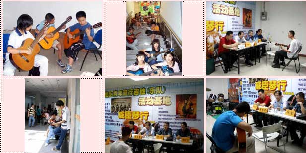 6月11日,为了引导青年参与健康的文化活动,丰富青年的业余文化生活,提高青年的音乐文化素养,我宫与省吉他研究会在宫内的流行吉他活动基地举办了广东省音乐家协会吉他1—9级的考级试。这次考级的考级标准参照外国著名音乐学府的考级标准结合本地现况而制定,旨在规范普及吉他艺术的演奏,主考古典吉他独奏、流行吉他弹唱、重奏重唱等。本次考级由广州青年流行吉他活动基地主任、著名吉他教育家叶伟炎先生组织策划,还邀请了广东省有名的吉他名家、演奏家、教育家江伟杰、黄卓銮等吉他考级专家任评委。