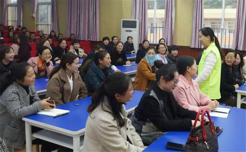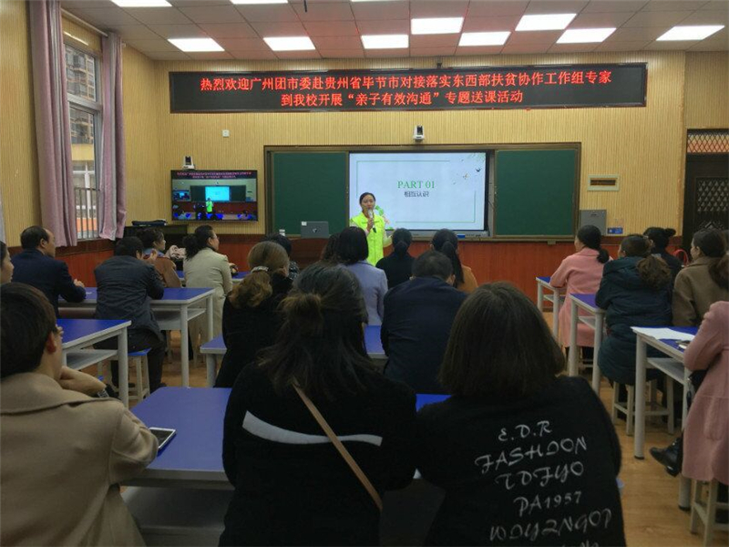 11月5日上午,广州青宫副主任王嘉为毕节市实验学校六年级家长开展《如何让亲子沟通简单而有效》亲职教育课堂。活动广受欢迎,原定60人的课程吸引了200余名学生家长前来参与,现场座无虚席,气氛活跃。