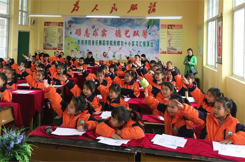 广州市青年文化宫积极响应“花城有爱,穗黔同心、穗毕同心”广州共青团助力毕节市、黔南州精准脱贫六大公益帮扶行动。为保证送课质量,广州青宫精选特色课程,并选派宫副主任王嘉、培训部部长李少婉、12355志愿讲师社工师张燕三名送教老师参与关爱农村留守儿童艺术帮扶行动、未成年人保护公益行动,送课至毕节、都匀当地学校。