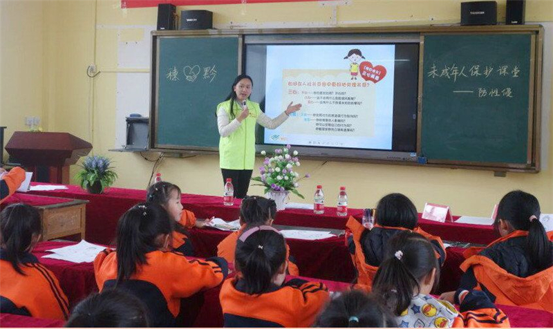 根据毕节与黔南州存在为数不少的留守儿童的现状,广州青宫推出“未成年人保护课堂”“订制”课程,由送教老师王嘉和张燕为毕节市实验学校和黔南州都匀市第十小学共123名一年级小学生送上了未成年人保护课堂《我的身体我做主——未成年人性教育&预防性侵犯》课程。