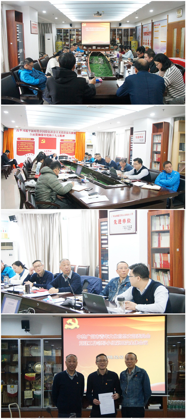 为深入贯彻落实党的十九大精神和党的建设总要求,按照广州市委相关文件精神要求,结合青宫党建工作实际,12月13日下午,中共广州市青年文化宫总支部委员会党建工作领导小组召开第三次全体会议,以支部述职评议等形式,专题总结2018年一年里青宫党总支全面从严治党的举措与成效,谋划部署推进“两学一做”学习教育常态化制度化、“不忘初心、牢记使命”专题教育等党建工作重点。