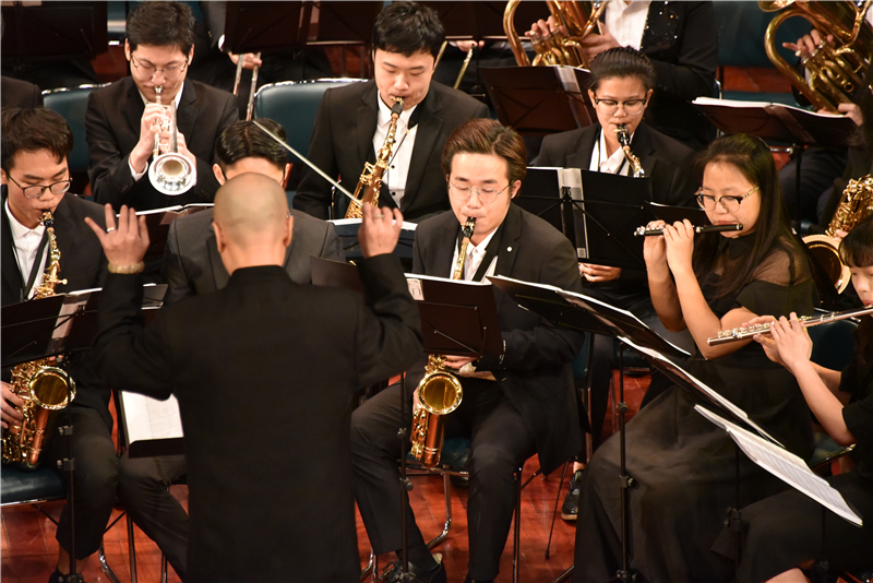 作为本次唯一一支民乐团,华侨外国语凤鸣民乐团演奏的《山之风》将民乐、人声咏叹融合在一起,让在场许多从小学习西洋乐器,很少接触民族乐器的团员大为感叹。已经多次参加过乐团交流活动的广东警官学院警察乐团这次登台水平更显成熟,从指挥到演奏员都是身着警服的学生,自带的光环魅力,一上台就征服了台下观众的眼球。