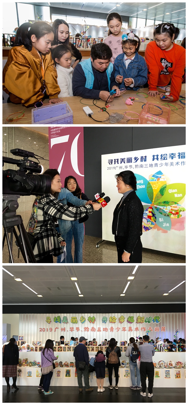 活动于7月启动,向三地中小学生征集具有时代气息、地域特色、民俗风采和能反映新时代城市发展、乡村振兴发展成果的美术作品,得到三地青少年宫、校外教育中心、学校等的热烈响应,学生投稿踊跃。经由广东技术师范大学美术学院院长刘颖悟,广州美术学院美术教育学院教授张幼云,华南师范大学美术学院副教授华年,广州市教育局教研室美术教研员陈玉萍,广东省青年美术家协会主席钟瑞军,广州市美术家协会副主席张思燕,广州教育学会中小学美术教研专委会会长方剑等组成的专家评委会遴选,三地各80件共240件具有代表性的作品以及一件立体作品入选本次“寻找美丽乡村共绘幸福新时代——广州、毕节、黔南三地青少年美术作品巡展”。