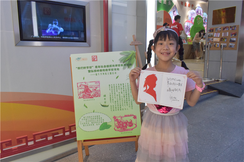 为让更多人了解剪纸艺术,使传统民间艺术发扬光大,6月20日,广州市青年文化宫结合端午节契机,组织开展“我们的节日”青年社会组织伙伴日系列活动暨弘扬岭南传统节日文化——端午节剪纸主题活动,邀请了人像剪影大师郭汝维现场剪纸,让市民领略剪纸艺术的魅力,弘扬中华民族优秀传统文化。