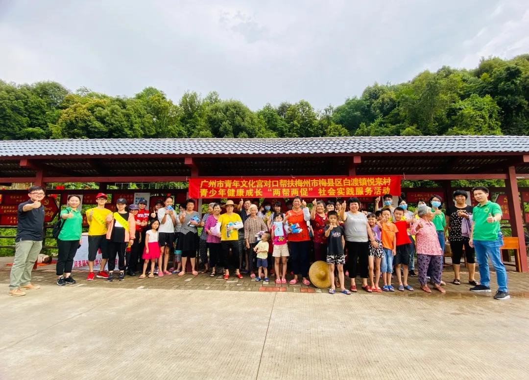 广州市青年文化宫近年来多次组织来到广东省梅州市梅县区白渡镇悦来村开展服务,以实际行动为贯彻落实“两帮两促”,护航乡村青少年健康成长。此行,广州市青年文化宫组织青宫社工、高校学生和红十字会讲师共19人,由广州市青年文化宫副主任王嘉带队,于2020年8月15日至16日再次来到悦来村开展“两帮两促”社会实践服务行动。
