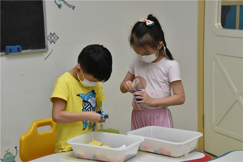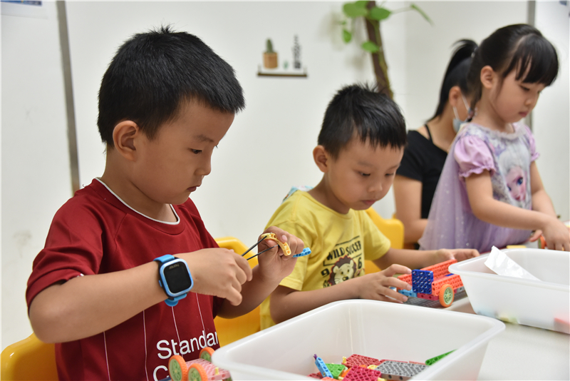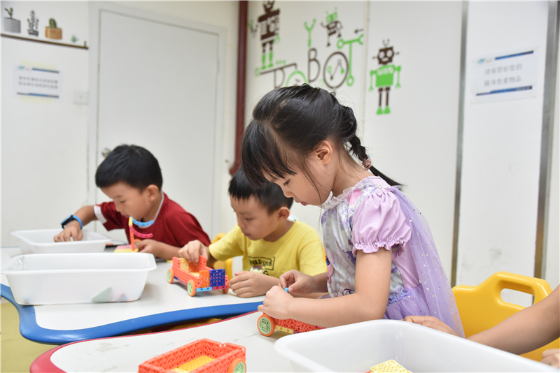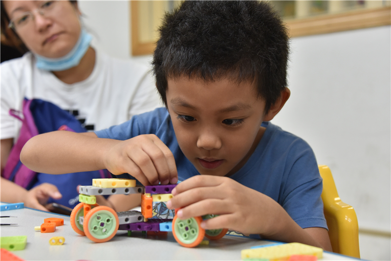 在机器人创意搭建体验课上,5—8岁青少年在老师的指导下,利用积木材料进行车辆模型创意搭建。孩子们独立思考,自己动手,在欢乐的气氛中享受着创作的快乐,感受拼装的奇妙。不一会,一辆辆造型各异、富有巧思与趣味的车辆模型在孩子们的巧手下诞生了。孩子们爱不释手地捧着自己的“作品”,大声喊着还想来,“又能玩,又能学,想天天都过来。”