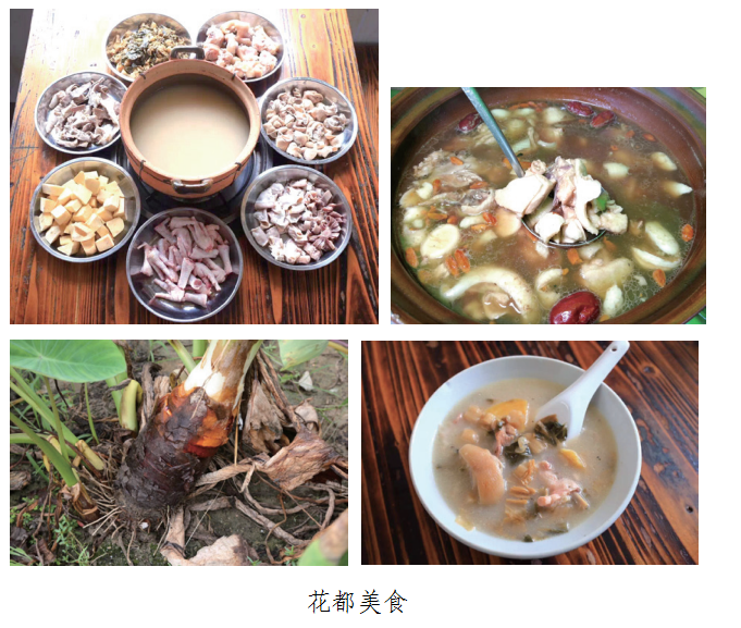 花都特色美食都唔少嘅!有炭步芋頭、京塘蓮藕、蓮塘冬瓜、李溪石硖龍眼、新塘紅面楊桃同魚包、永和鹹鵝、臭屁醋……都系花都嘅特色美食,既健康又美味,最岩成日嘈住要減肥但系又忍唔住口嘅你。 臭屁醋又叫長壽醋,聞落臭,吃落就觉得香,健脾開胃,消解暑氣。煲滾後放入豬手、雞、梅菜、黃豆一起打邊爐,令人回味無窮。