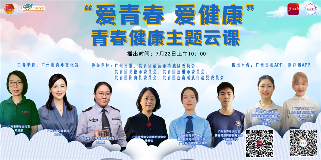 2020年7月-9月,由广州市青年文化宫主办,共青团清远市清城区委员会、共青团英德市委员会、共青团连州市委员会、共青团阳山县委员会、共青团连南瑶族自治县委员会协办的“爱青春 爱健康”青春健康主题云课堂在广州日报APP、新花城APP播出。
