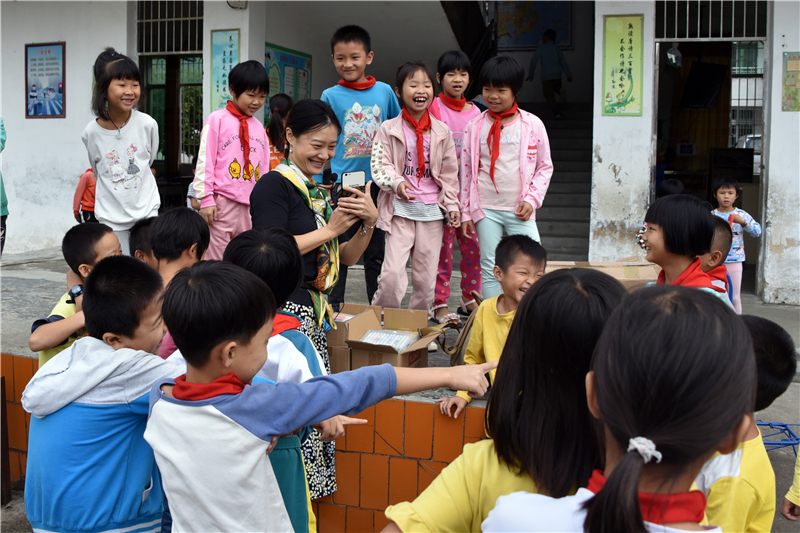 25日上午,在阳山县团委书记梁建锋的陪同下,青宫一行来到了七拱隔坑小学。这所乡村小学只有一至四年级共4个班级,每间课室的电教设备齐全,全校91名学生,6名教师(含校长),每一位教师都身兼语数英思品音体美等多个科目。孩子们蜂拥围绕着来自广州青宫的老师们,稚嫩淳朴的眼神中满是对来自大城市新知识的渴望。