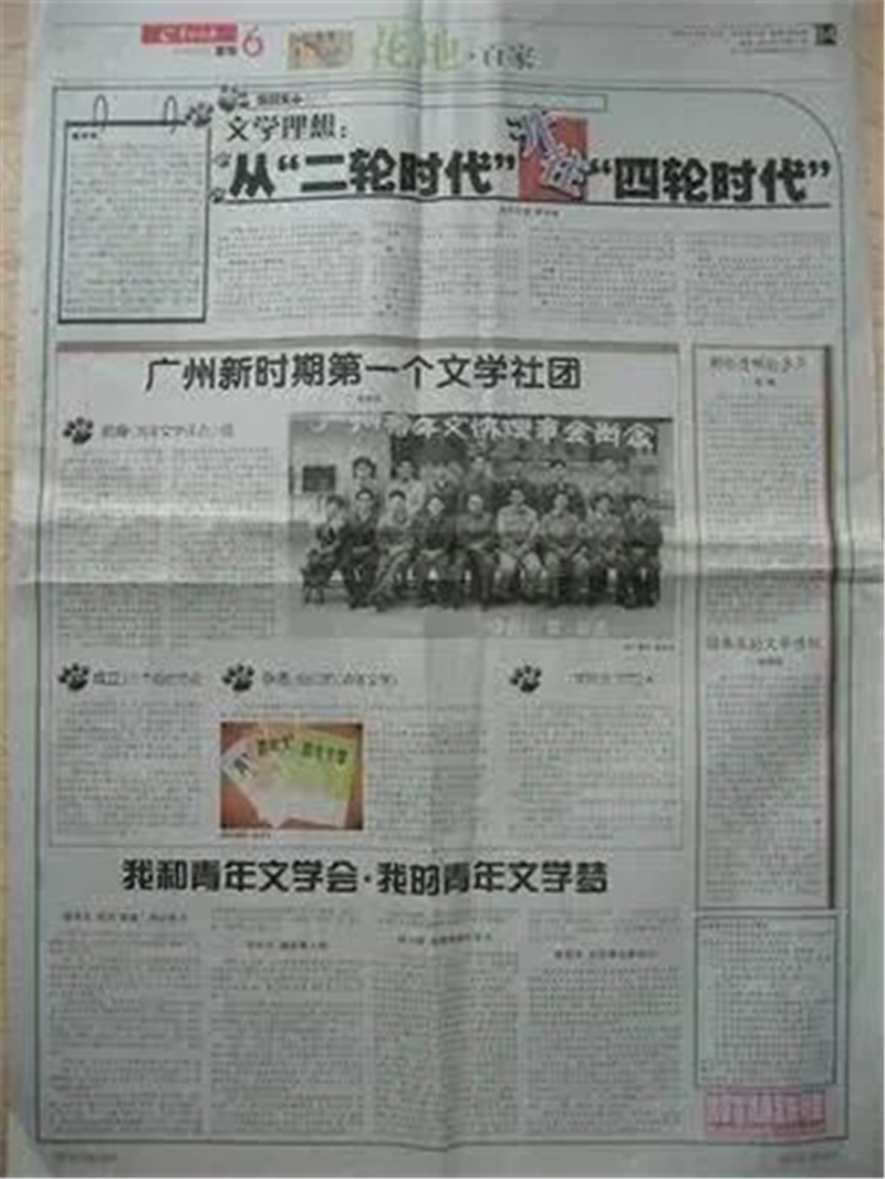 在2005年6月18日羊城晚报花地版,有一篇专门介绍广州青年文学爱好者协会情况的文章,题为《广州新时期第一个文学社团》。该文的作者是原广州青年文学爱好者协会副会长、原广州日报文学副刊部副主任、广东省朗诵协会文字顾问、广州电大汉语言文学系客座教授赵南成。