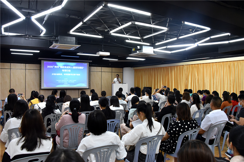 2020年10月15日下午,广州市未成年人保护委员会办公室、共青团广州市委员会、少先队广州市工作委员会、广州市人民检察院组织来自广州市各区的百名小学少先队辅导员和中学团委书记代表在广州市青年文化宫开展未成年人防性侵教育骨干师资培训。