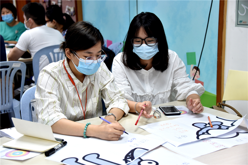 广州市青年文化宫、12355广州青少年服务台社工王嘉、邓颖思、吴镕而、张燕等人为少先队辅导员代表及中学团委书记代表分别开展适合小学、中学阶段的未成年人防性侵教育实务培训课程。与传统讲座不同,本次实务培训采用互动式、体验式、浸入式课堂模式,引导参与者通过体验去感受及思考。