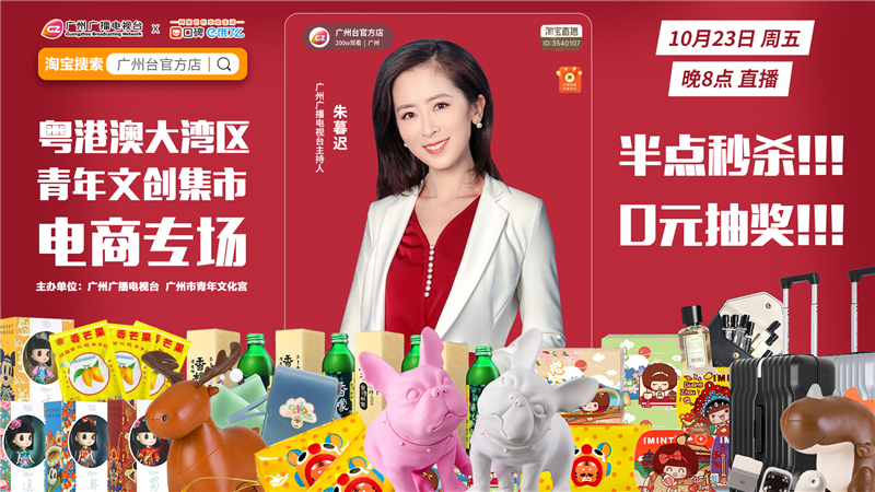 大湾区青年周系列活动【粤港澳大湾区青年文创集市】各种尖货福利任你拿!10月23日晚上8点,广州广播电视台携手广州市青年文化宫在北京路市青年宫粤港澳大湾区青年家园开直播啦!