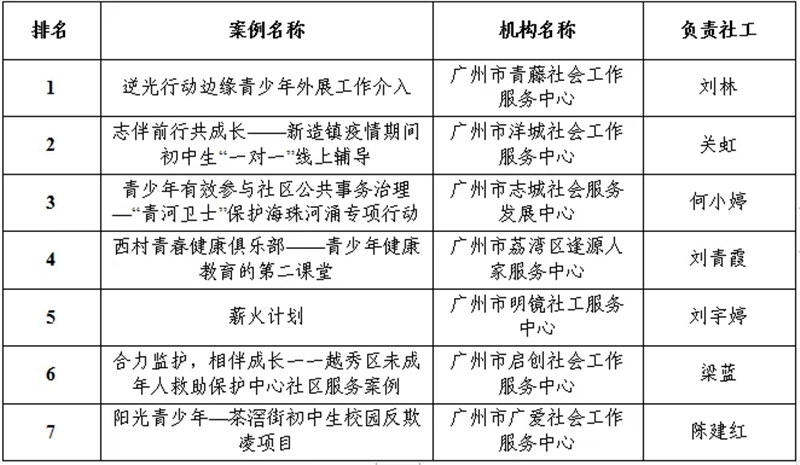 广州市青少年事务社会工作案例大赛案例评选圆满收官