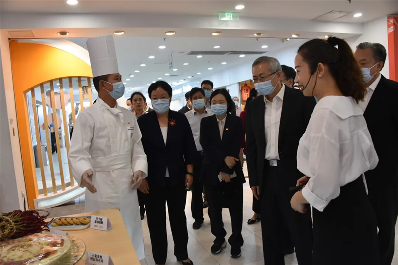 11月10日上午,人力资源社会保障部副部长汤涛一行来到市青年宫,就粤菜师傅、广东技工、南粤家政“三项工程”广州交流会及市青年宫粤港澳大湾区青年家园及文创展、青年公益直播间等活动开展情况进行考察调研。人力资源社会保障部职业能力建设司司长张立新、省人力资源社会保障厅厅长陈奕威,市人大常委会党组副书记、副主任、市总工会主席唐航浩,广州市副市长黎明,市人力资源社会保障局局长王健,团市委书记徐柳,越秀区委常委、区政府党组成员颜强,以及人力资源社会保障部、省人力资源社会保障厅、市人力资源社会保障局、市工会、市妇联、团市委、越秀区等单位相关部门同志陪同参加调研。