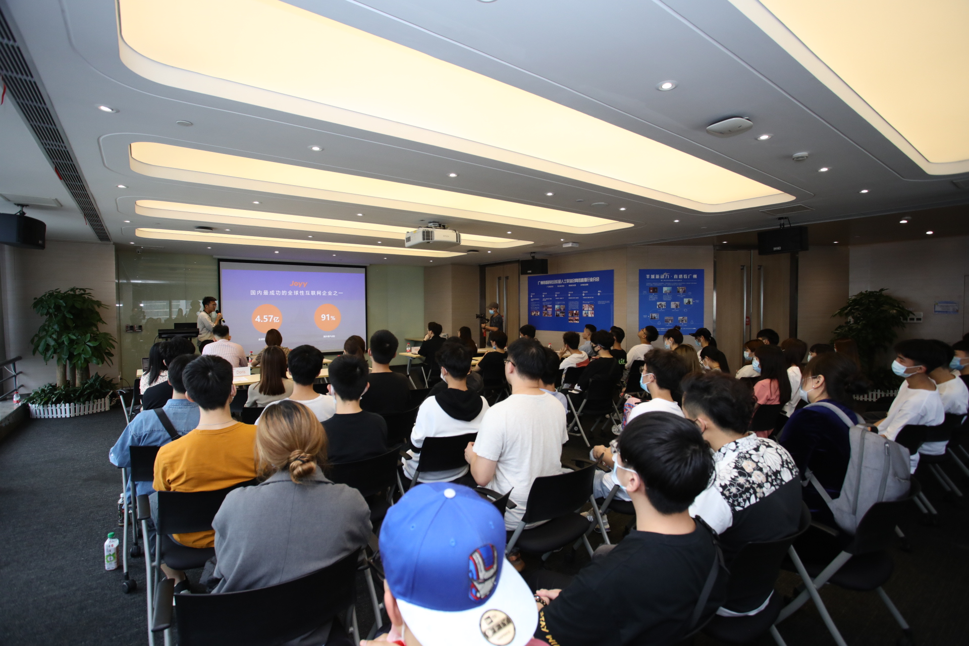上午行程告一段落,等待港澳台青年的是一场由欢聚集团员工代表组织策划的职场经验分享交流会。会上SHOPLINE业务嘉宾为港澳台青年介绍了目前跨境电商行业的发展形势以及相关求职经验,同时项目HR也为参与会议的港澳台青年介绍欢聚集团的“青苗计划”,呼吁大家积极寻找属于自己的“人生赛道”。短暂的交流环节中,来自暨南大学以及广东金融学院的同学们成功向SHOPLINE项目组成员请教业务技巧,轻松愉快的交流氛围让参与会议的港澳台青年进一步了解跨境电商行业以及湾区城市的发展前景。交流结束后,“同心筑梦”活动导师刘延鑫呼吁港澳台青年要充分利用自己的身份优势,积极参与实习计划汲取更多经验,才利于在竞争强大的内地求职市场脱颖而出。