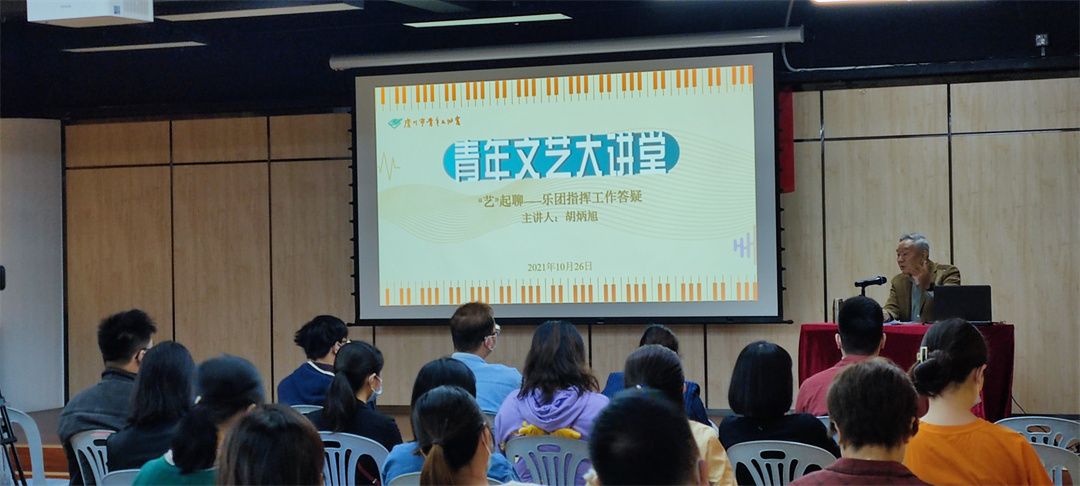 10月26日,我国著名指挥家、国家一级指挥、曾在7个国家级团体担任常任指挥的胡炳旭老师以《“艺”起聊——乐团指挥工作答疑》为本次“青年文艺大讲堂”系列体验课程拉开了序幕。胡老师从乐团的排练经验、指挥的基本素养等方面深刻阐述了指挥在乐团中的重要作用,同时指出指挥准确把握作品背景、复调思维、和声概念及声部关系的平衡是排练的基础和前提。在现场互动环节中,胡老师兴致勃勃地向参与者分享了从业50余年的经验,并以幽默风趣的语言和层出不穷的例子,为大家答疑解惑,帮助青年教师解决指挥中的遇到的困难和问题。