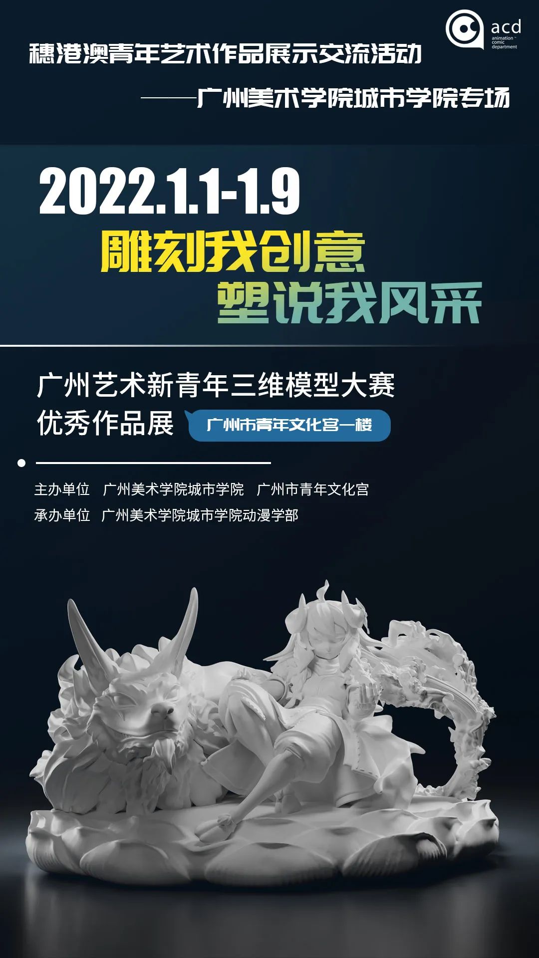 本次活动展示《广州美术城市学院动漫学部创新基础教育成果展》《广州新艺术青年三维模型大赛优秀作品展》多件优秀作品,内容涵盖戏剧、音乐、美术、动漫、创意设计、工艺美术等题材内容。作者们注重走进生活,感悟新时代日新月异的大湾区风貌,选取独特视角,用作品展现当代青年的新思维。