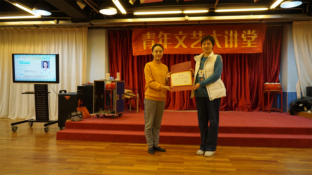 为继续壮大充实青年宫专家艺术队伍,此次课程结束后,我宫副主任靳霞同志为宁丹老师颁发证书,聘请她作为我宫艺术顾问,市青年宫文艺大讲堂专家库又添一员,也为未来文艺大讲堂更好地服务青年群体提供了有力的智力资源。
