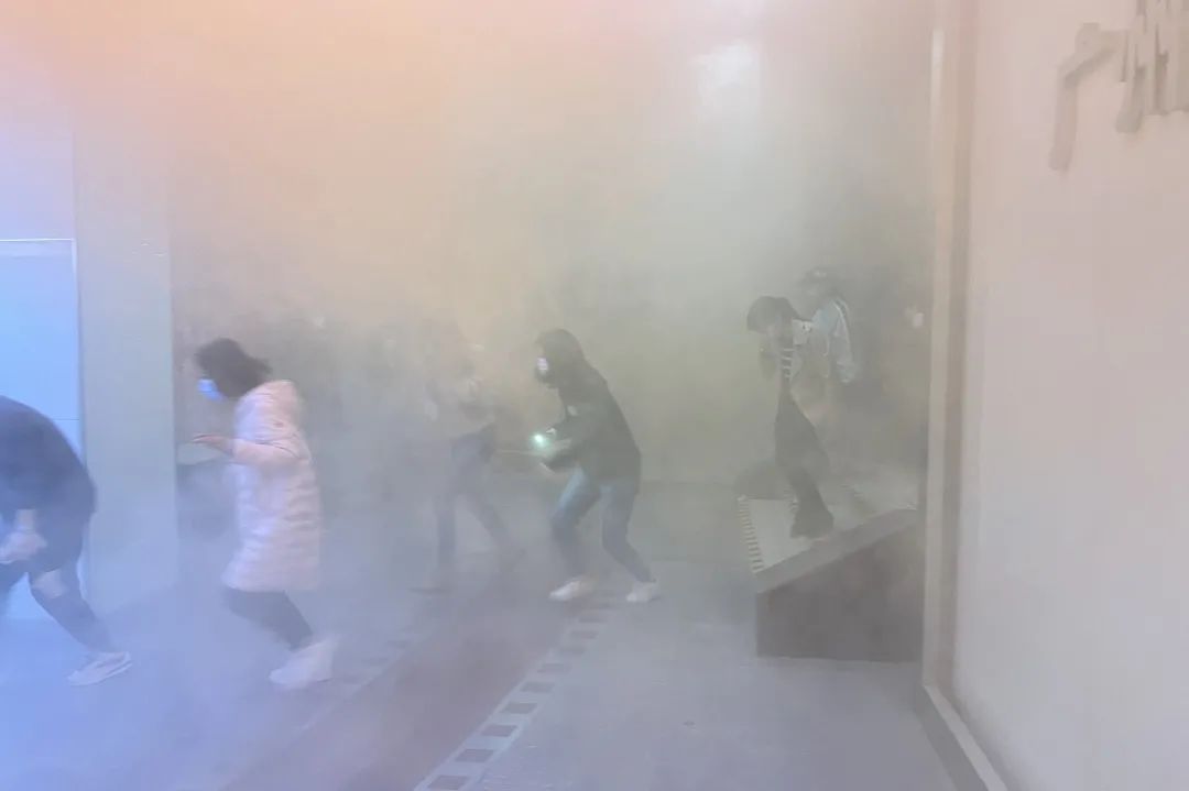 1月27日上午9:00时,市青年宫活动大楼南门1楼及7楼大厅北侧模拟发生火灾事故,现场浓烟弥漫,市青年宫立即启动应急疏散预案,消防警铃、事故广播响彻各个楼层角落。在安保人员指引下,辖内全员均能做到弯腰、捂鼻,迅速有序地通过消防楼梯疏散至户外安全区域。同时,安保人员模拟拨打119向应急救援部门报告火警情况,并穿戴好消防战斗服、防毒面具迅速前往起火现场进行灭火。经清点,参加本次疏散演练的99人均已顺利撤离。