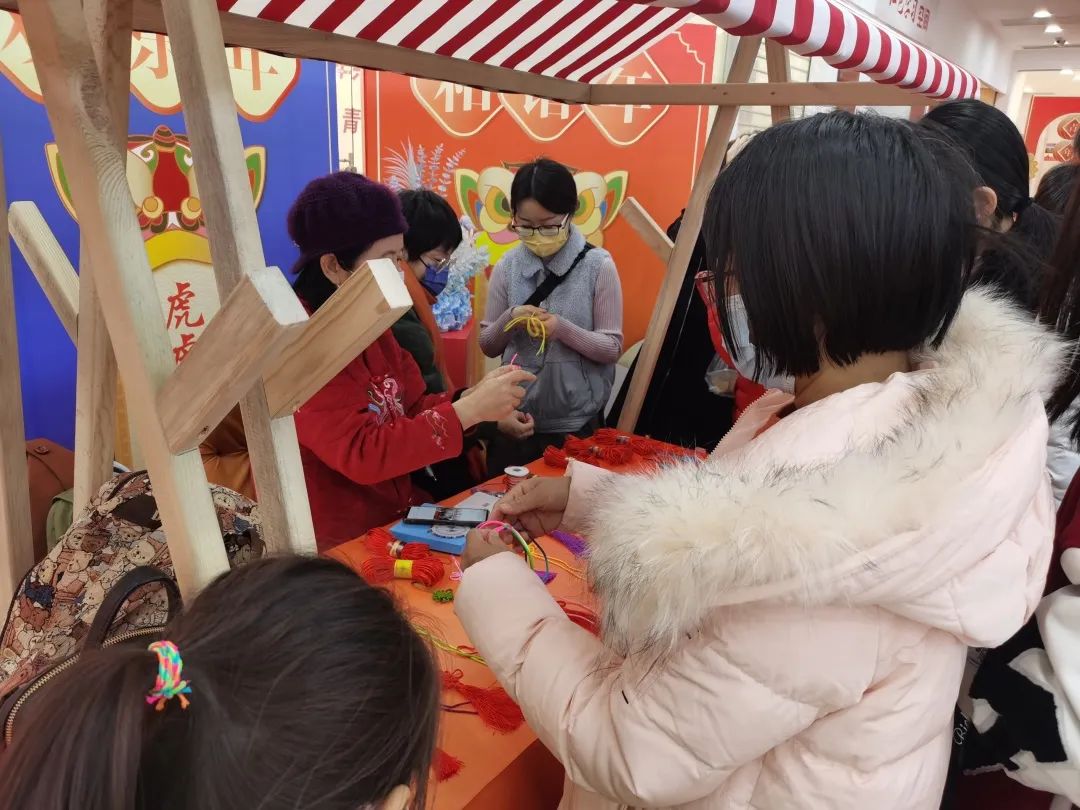 除了冬奥会比赛项目体验活动,当天也有“虎年潮市,拾忆民俗”——2022年粤港澳大湾区青年民俗文化节活动中“记忆年”的活动,市青年宫组织了中国结民俗体验,中国结编织老师在现场手把手教学,让青年朋友体验手工编织的乐趣。中国结是我国特有的民间手工编织艺术,不仅具有造型、色彩之美,而且皆因其形意而得名,用以传递祝福。来体验编织活动的林小姐说:“看着自己亲手制作的中国结,感受到传统民俗文化带来的快乐,在喜迎新年和冬奥会的浓厚气氛中愉快地度过春节。”