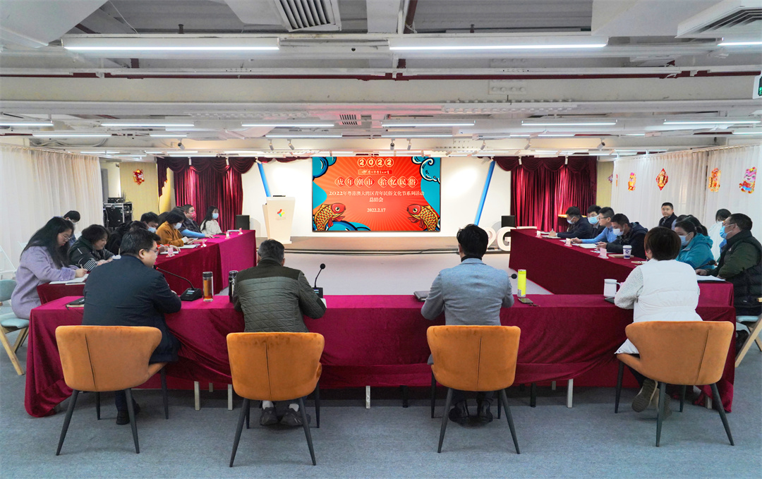 为总结“青年 你好”系列活动之“虎年潮市,拾忆民俗”——2022年粤港澳大湾区(广州)青年民俗文化节系列活动情况,并对下一阶段工作进行计划与部署,2月17日下午,广州市青年文化宫召开“青年 你好”系列活动之“虎年潮市、拾忆民俗”——2022年粤港澳大湾区(广州)青年民俗文化节系列活动总结会。