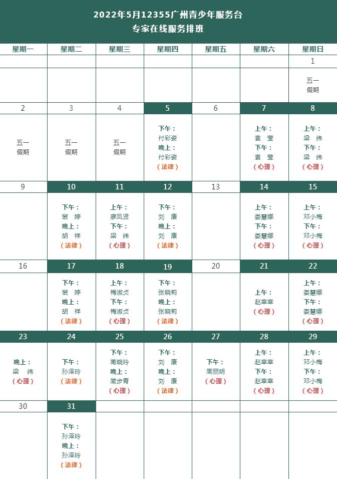 专家在线 ‖ 2022年5月广州12355“专家在线”排班表出炉