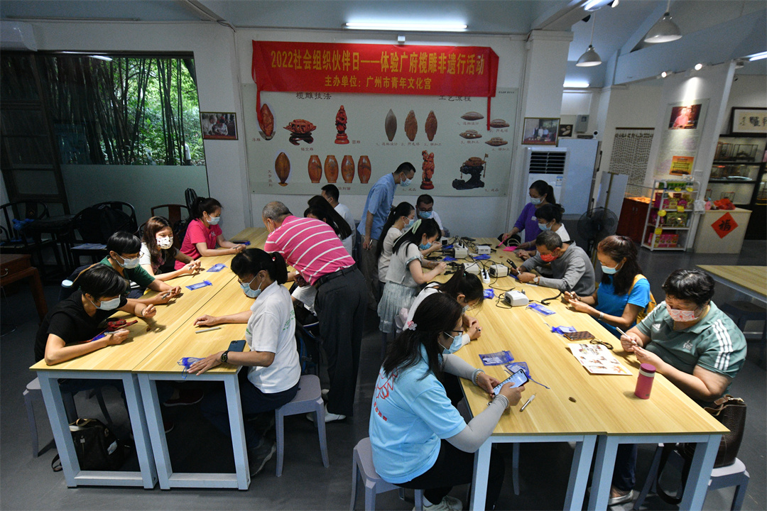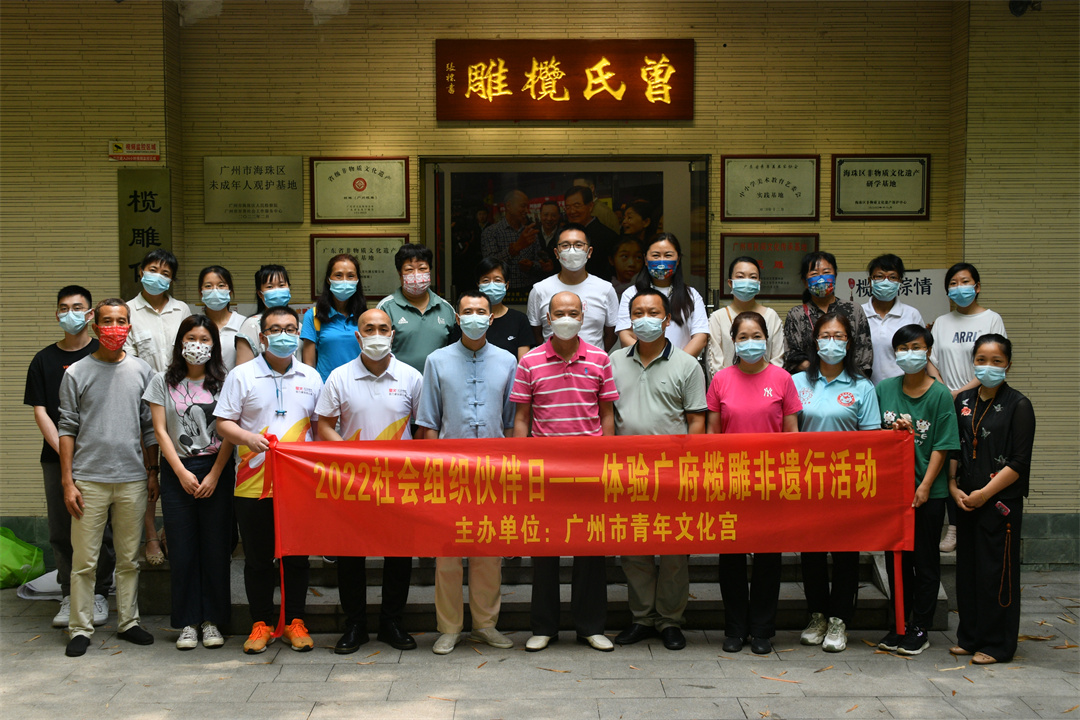 4月28日,广州市青年文化宫组织开展了2022年第二期青年社会组织伙伴日活动,来自全市10余家青年社会组织共计20名成员,一同来到“广州榄雕”项目省级保护单位——曾氏榄雕研学传承基地,通过体验广府榄雕,开展团建活动等形式,增进社会组织间的交流,进一步凝聚、维系青年社会组织。