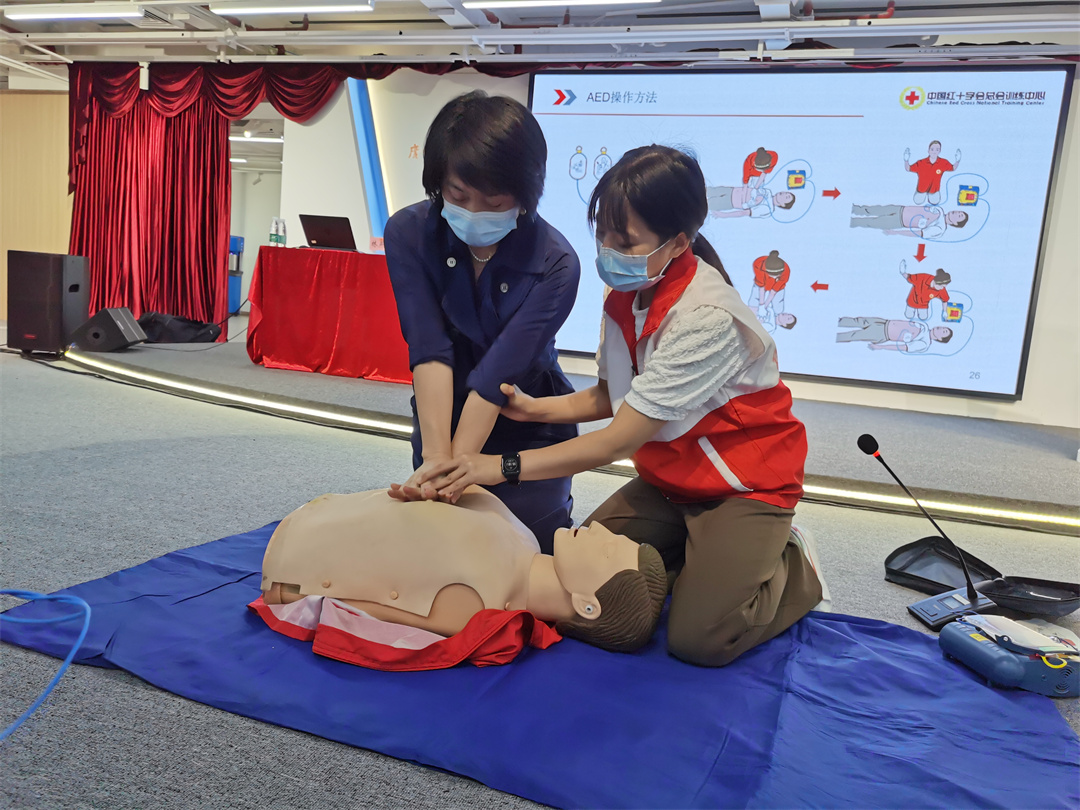 讲座重点介绍了心肺复苏操作流程、胸外按压和人工呼吸的方法、心肺复苏效果评估、高质量心肺复苏标准、心肺复苏有效指征、心肺复苏终止条件、自动体外除颤器的操作步骤和注意事项等,并进行了现场操作体验。