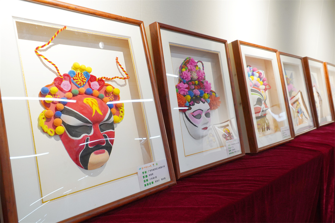 本次展览展出由广州市越秀区大南路小学学生创作的158幅“创意脸谱头饰”作品。展示作品在脸谱的基础形式上融入粤剧元素,通过绘画、剪纸、衍纸、手工制作等形式丰富作品内容,突出粤剧非遗文化属性与魅力。