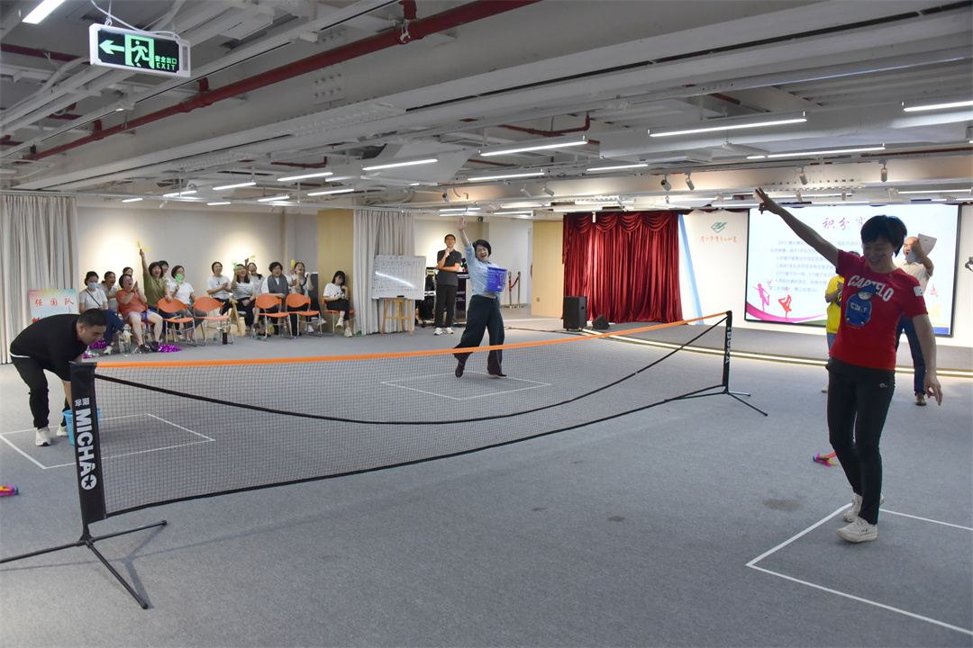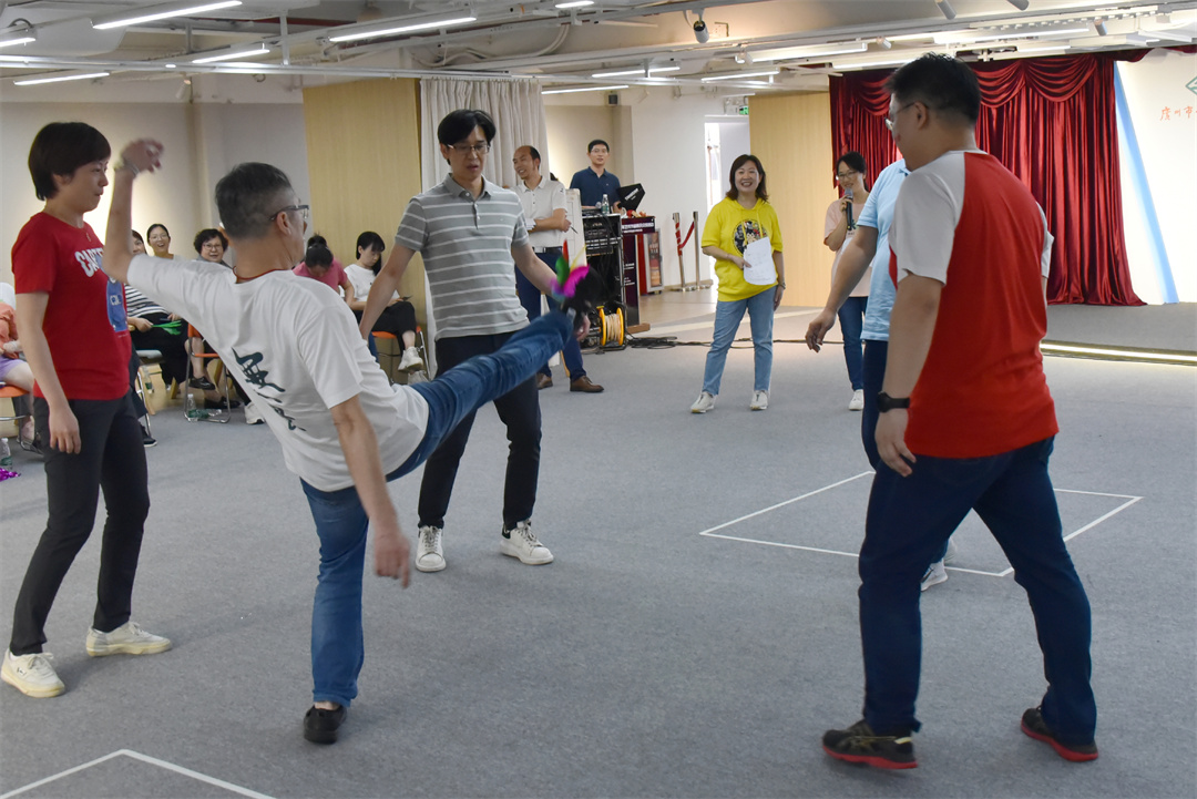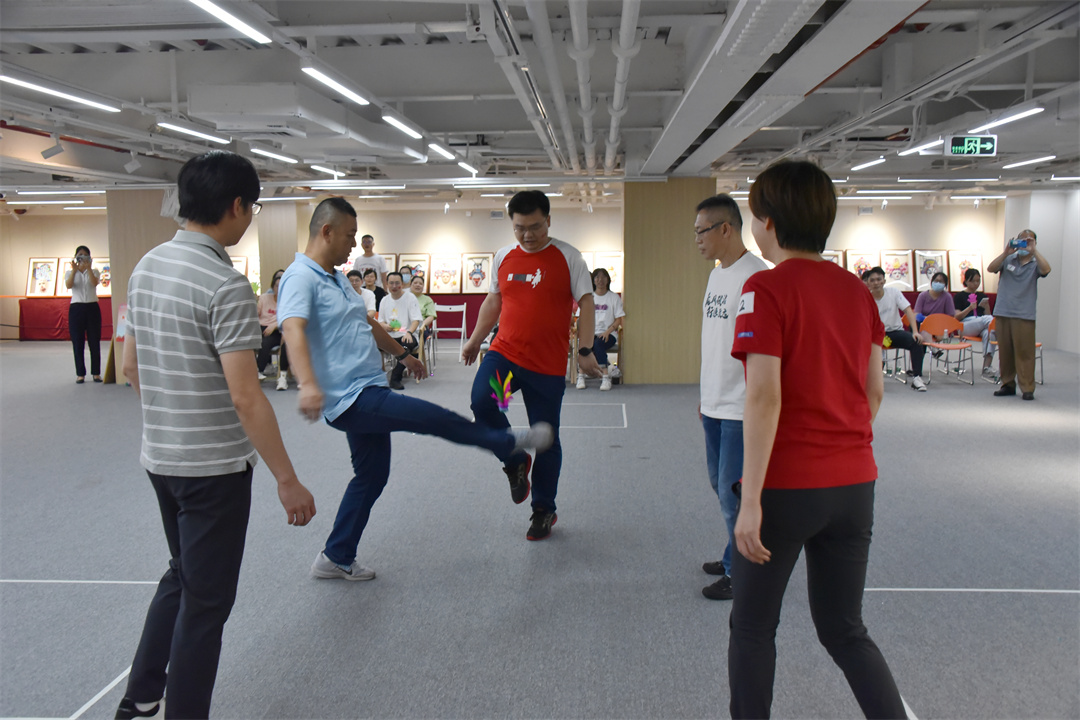 为丰富青宫人的精神文化生活,增强身体素质,缓解工作压力,增进沟通与友谊,让工会真正成为全体职工的精神家园,6月16日下午,市青年宫工会开展“爱运动爱‘毽’康”广州市青年文化宫职工踢毽子比赛,通过趣味比拼,“踢出”花样,“踢出”健康。比赛由市青年宫党总支书记杨俊东同志担任总裁判员,市青年宫全体领导班子成员出席,全体工会会员参加。
