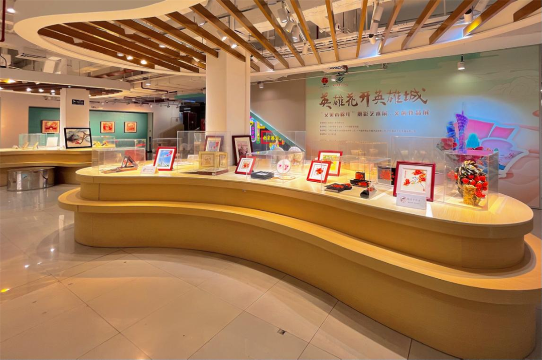 本次展览得到广州轻工集团、广州市大新文化创意发展有限公司、广州剪纸文化传播有限公司、广州真朴苑工艺美术品有限公司等单位大力支持,共展出46类、70余件以红棉元素为主的红色文创作品,通过融合羊城地域特色与文化寓意,以艺术形式呈现英雄城内英雄花。
